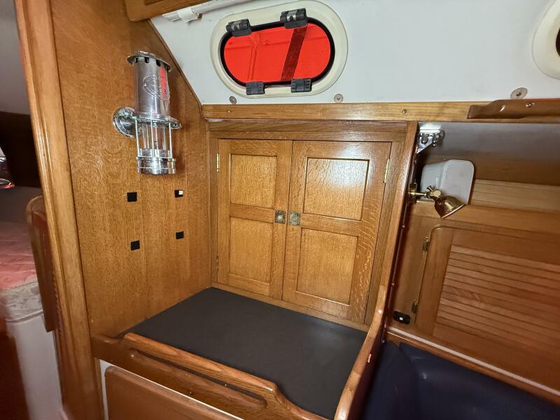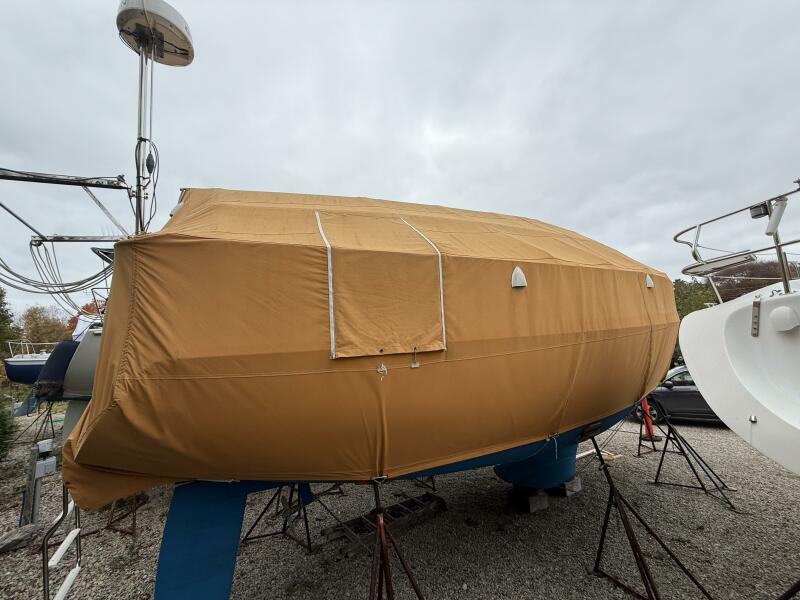 Loaded with popular options and upgrades like new electronics, davits & dinghy, solar panels, full cockpit enclosure, diesel heating, new sails, smooth bottom job, MaxProp, custom mattresses, and extensive custom woodwork that led to a 6-page spread in Good Old Boat magazine.