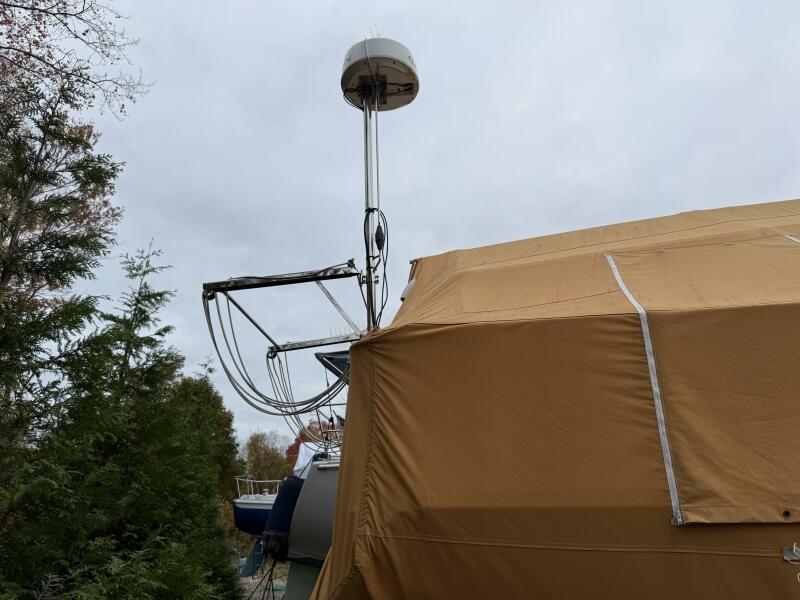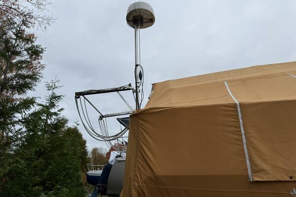 Two solar panels (2023) mounted to bimini top with regulator allow for running frig etc. on anchor