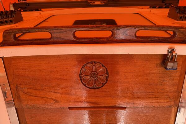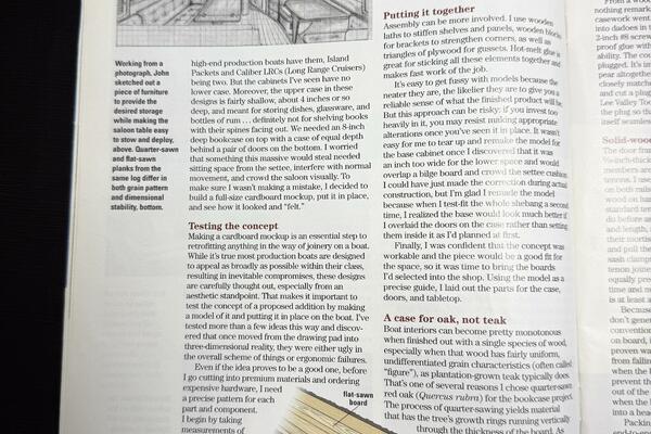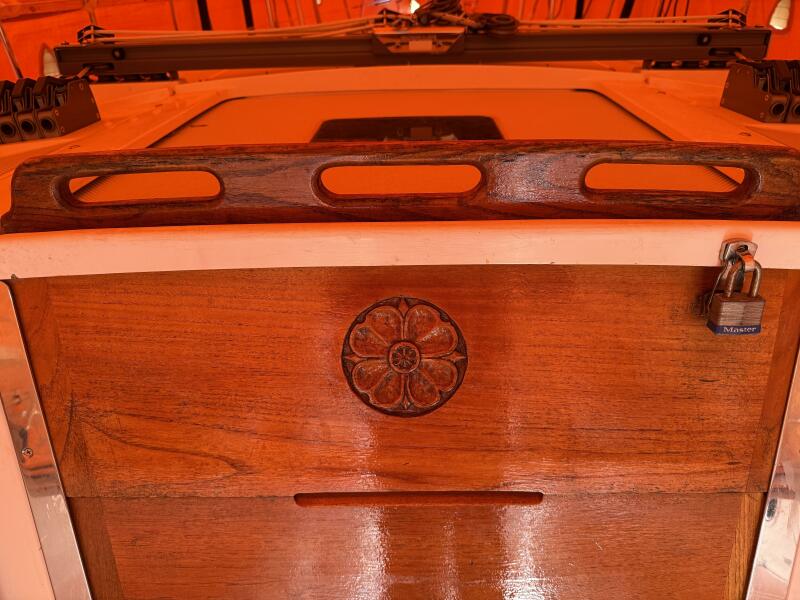 Custom wood interior with additional storage and cabinets done (as featured in Old Boat Magazine)