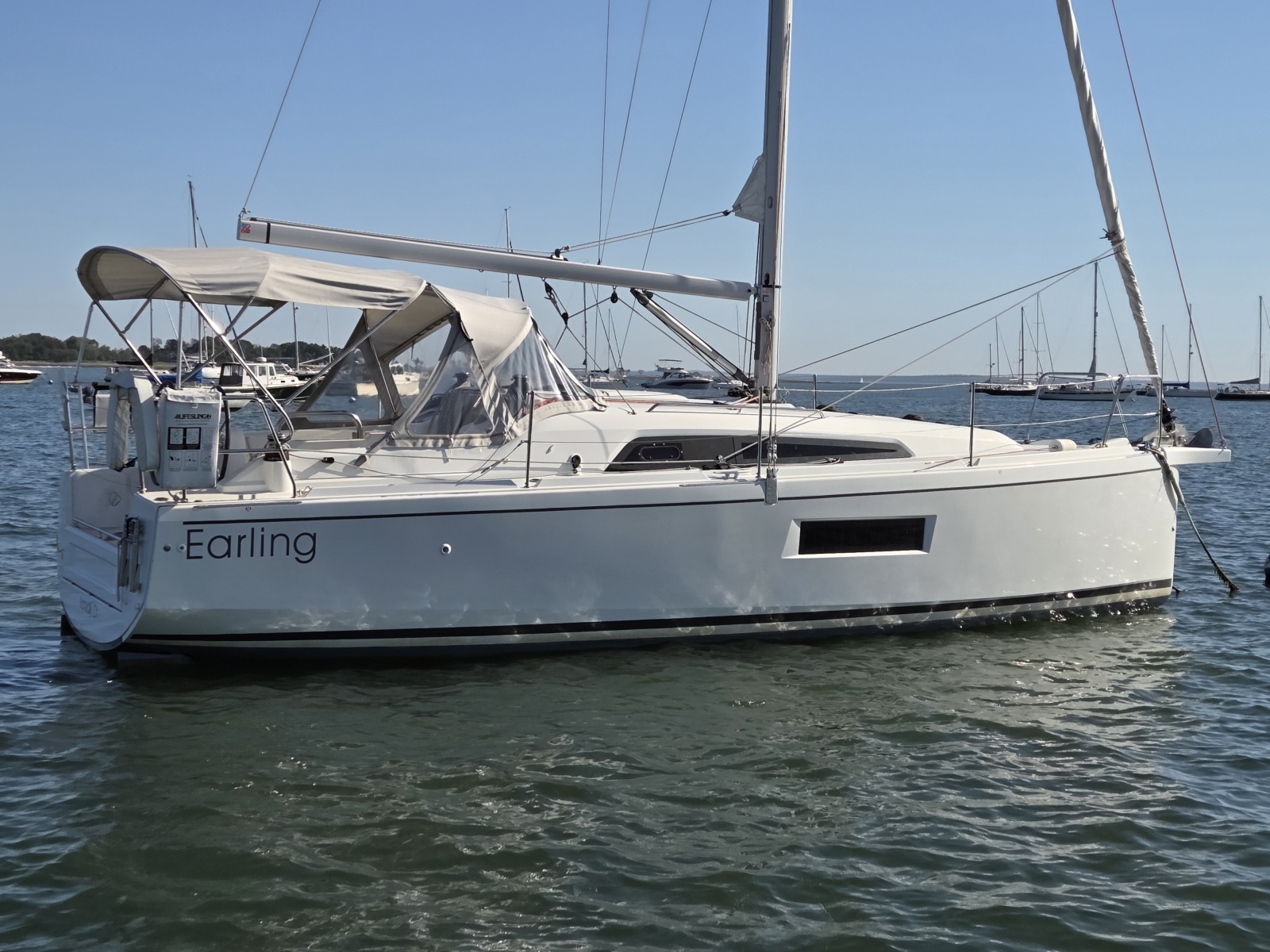 She was ordered by an extremely experienced, ocean crossing owner for simple family sailing on Long Island Sound. With that in mind, she is currently set up Jib and Main but can accomadate either Asymmetrical chute or Code O.